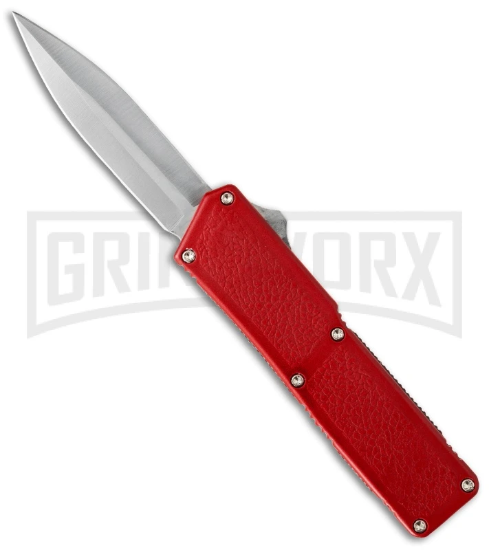 This model has a red powder coated aluminum handle with a textured surface to facilitate good grip. The firing button is mounted on the side, making the Lightning slim and easy to carry. The blade is satin finished stainless steel.