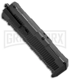 This Paragon Estiletto model has a black coated clip point blade and a brown dark earth handle with lightning bolt cutouts on the front and back of the aluminum handle. The Estiletto is a super-sized knife that offers rapid automatic deployment and a single-action design. Add a truly unique OTF to your collection today!